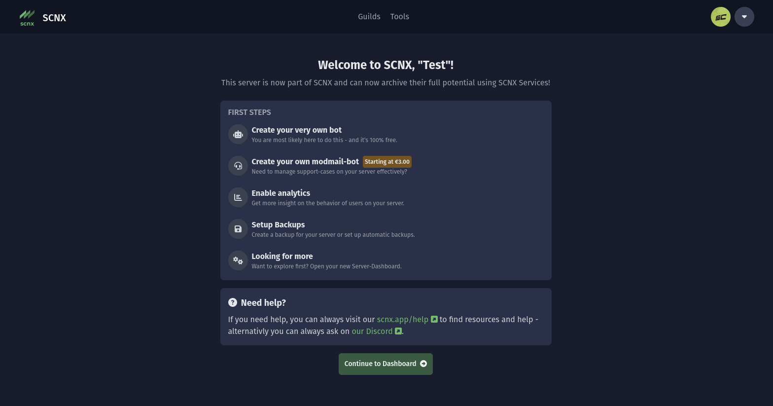 Dein Server wurde erfolgreich zu SCNX hinzugefügt 🎉