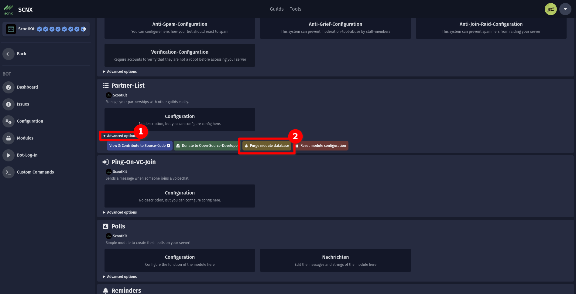- Click on "Purge module database".